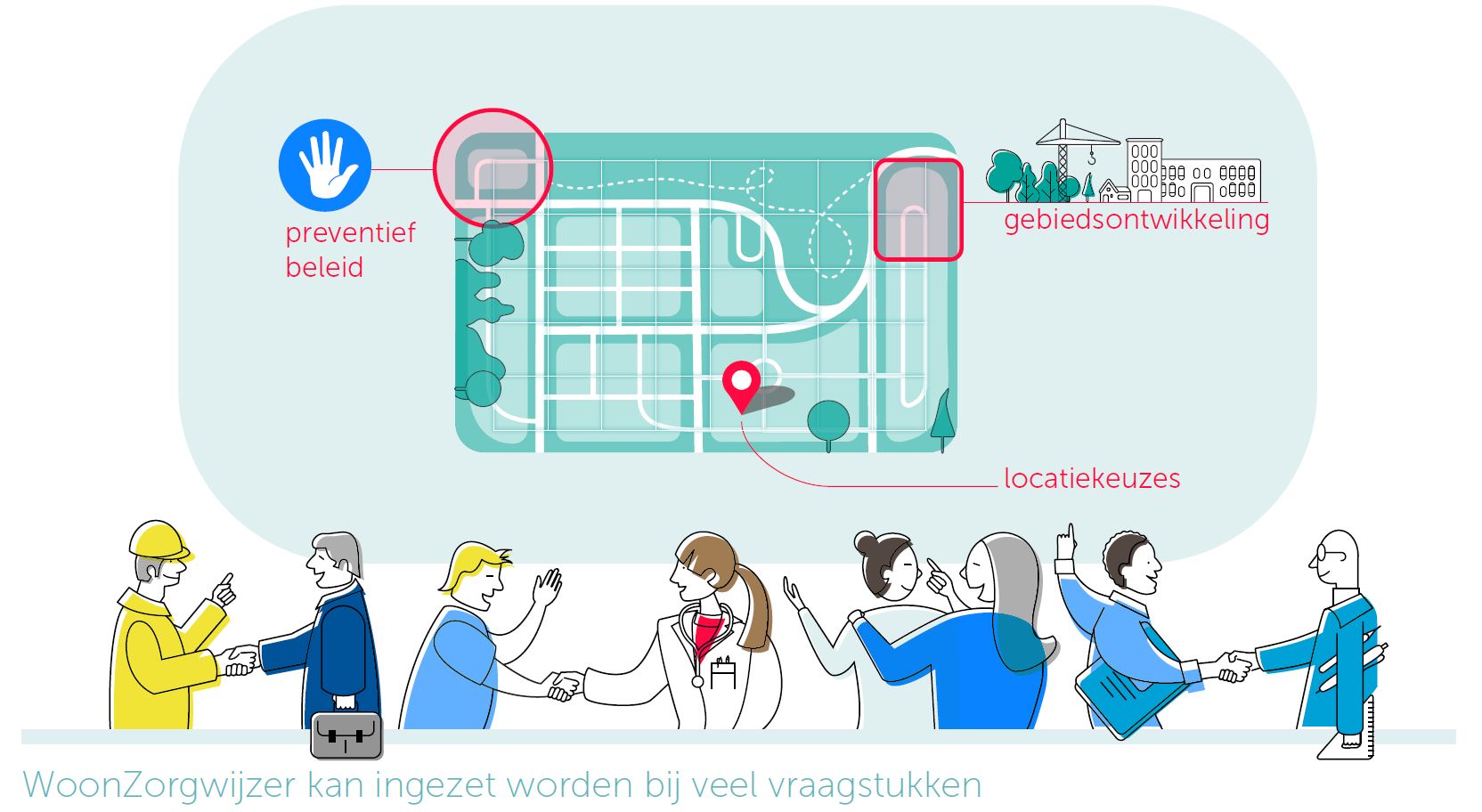 De kracht van de WoonZorgwijzer? Het instrument schrijft geen oplossingen voor, maar toont eenduidige informatie. Zo ontstaat de juiste basis voor het gesprek tussen stakeholders en voor gezamenlijke keuzes.